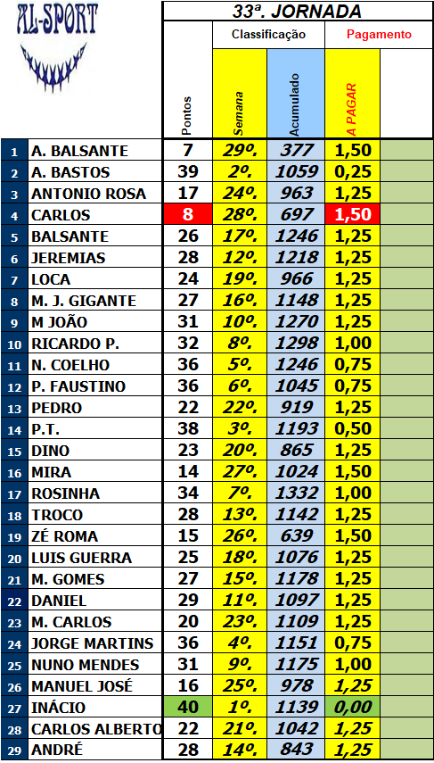 2º. – MANUEL GOMES ------------------------------ 33 pts.