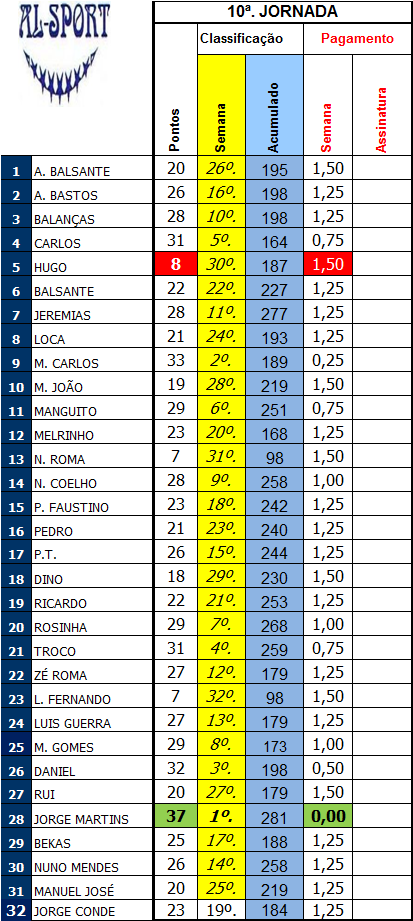 5º. - CARLOS - 31 pts. ( desempate por golos ( 1 )