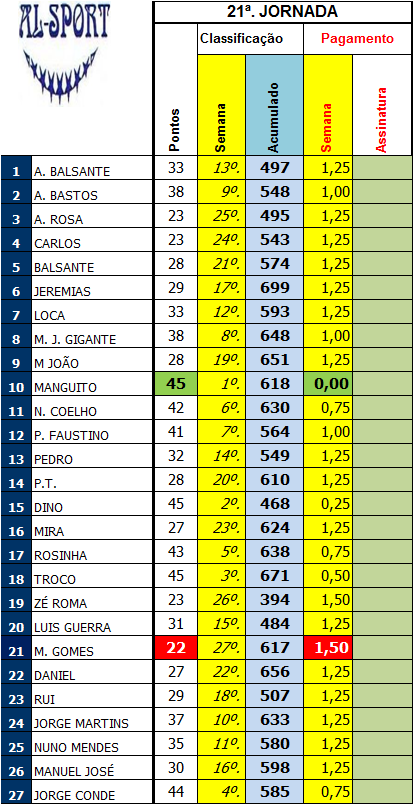 2º. critério. MAIOR NÚMERO DE PONTOS NUMA VITÓRIA SEMANAL ( se o empate persistir, seguiremos