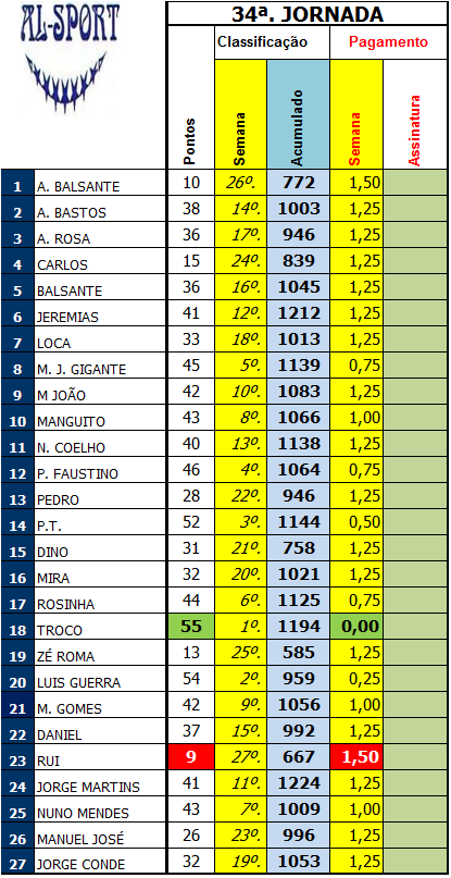 Parabéns ao Jorge Conde, que sendo o último da lista ( nº. 27) conseguiu o primeiro lugar da Semanal.